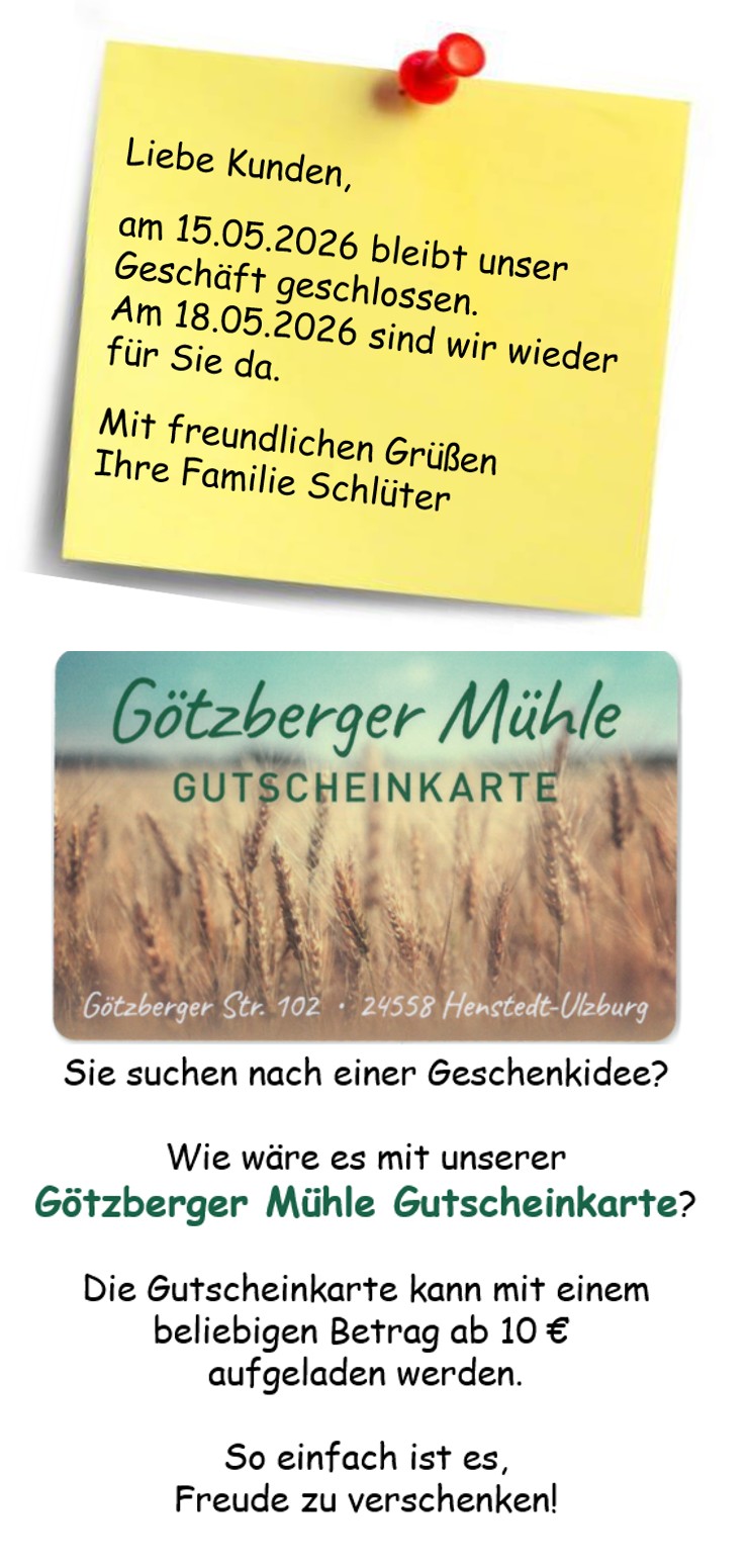 herzlich willkommen auf der Webseite der Götzberger Mühle!